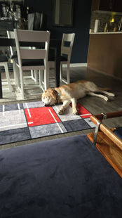 On walks, I’m getting better every day more relaxed and taking things in stride. Around the house, I’ve got great manners and am learning to settle independently, but I still love checking in for attention and affection. Being near my people is truly my happy place.