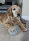 One of her favourite things is playing with a ball. She doesn’t quite bring it back yet, but the chase is half the fun! She also has the cutest grin and will squint her eyes at you when she is happy. She lights up when she hears laughter, often responding with her signature squinty-eyed smile and a burst of zoomies!